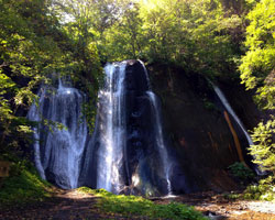 三段の滝:三つの段になって流れ落ちる優美な滝です。