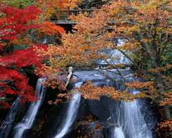 白扇の滝(はくせんのたき):幅が広く、白い扇を広げたように見えることから名付けられました。
