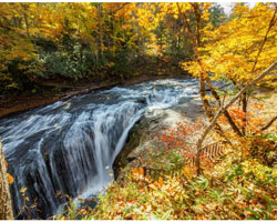 三段の滝: 3つの段になって流れ落ちる美しい滝です。特に紅葉の時期は、周囲の木々が赤や黄色に染まり、滝とのコントラストが息をのむほど美しいです。