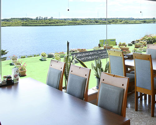 旧石狩川を臨む絶好のロケーションにあり、店名も太古からの悠久の流れに由来します。