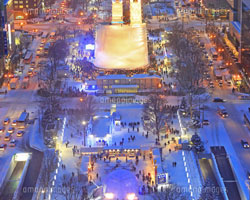 雪まつりの様子、噴水と花壇、ビアガーデンなど。