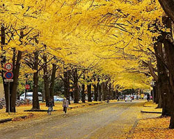 北海道大学のポプラ並木やイチョウ並木(紅葉時)。