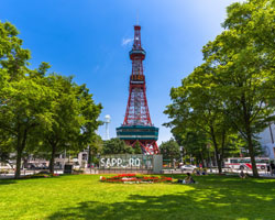 札幌テレビ塔: 大通公園の東端に位置するランドマーク。展望台からは大通公園や札幌市街を一望できます。
