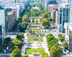 大通公園: 札幌の中心部を東西に横切る長さ約1.5kmの広大な公園。四季折々の花が咲き、雪まつり、ライラックまつり、YOSAKOIソーラン祭り、さっぽろオータムフェストなど、年間を通して様々なイベントの会場となります。