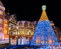 庭園の美しさ: 園内には四季折々の花が咲くイングリッシュローズガーデンがあり、特にバラのシーズン(6月下旬~9月上旬)は美しいです。冬にはイルミネーションも楽しめます。