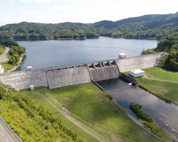 日本初めての台形CSGダム型式として、高さ52.0m、総貯水量74,500,000m3、有効貯水容量 66,500,000m3で計画されており、洪水調節、流水の正常な機能の維持、かんがい用水および水道水の供給を目的としています。