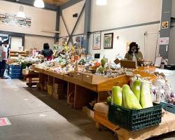地元産の新鮮な野菜や果物、加工品などが購入できる直売所です。軽食コーナーもあり、ソフトクリームや軽食も楽しめます。